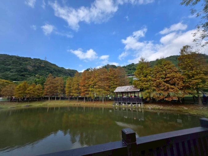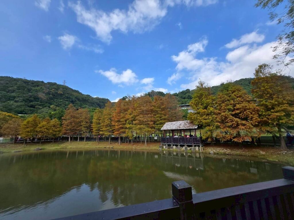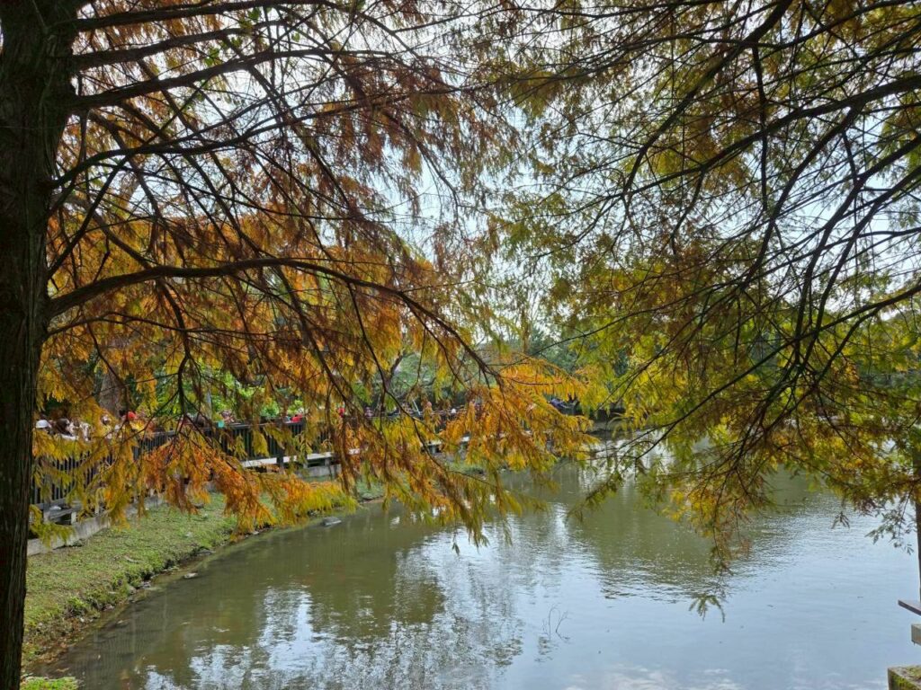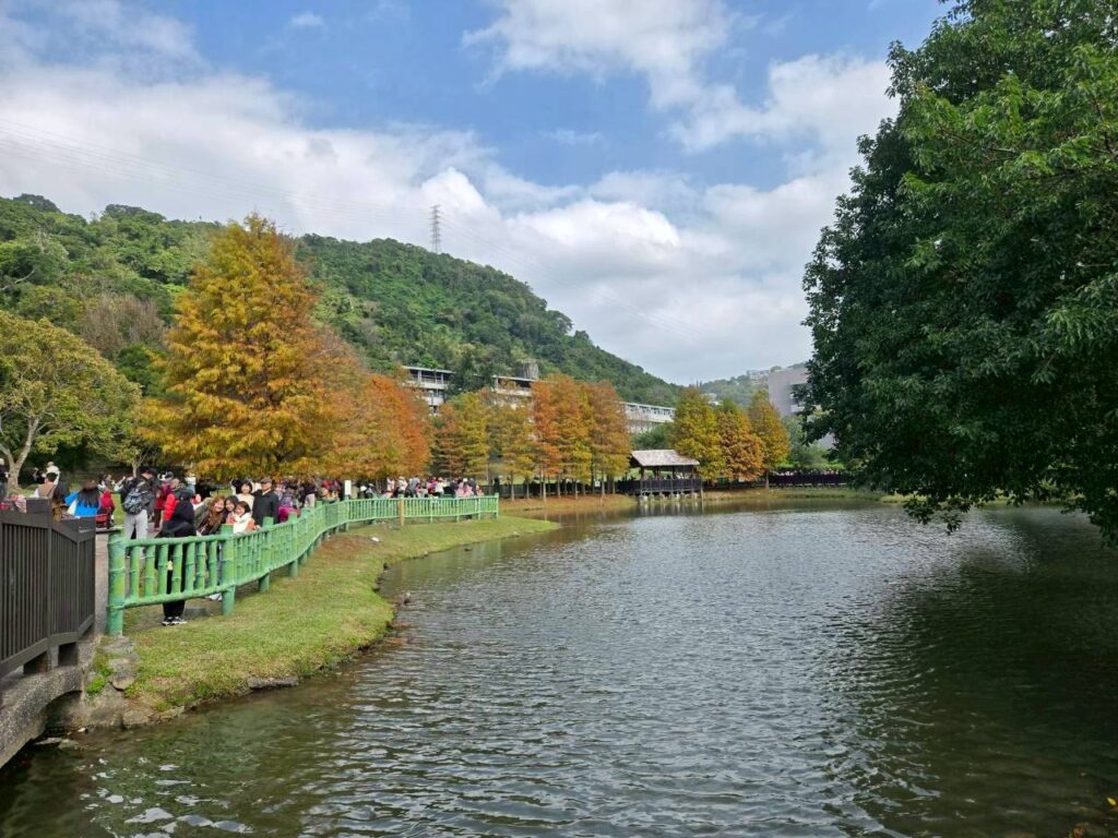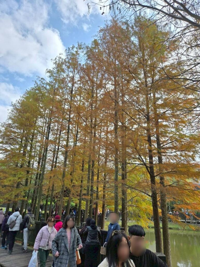 看到網友的落羽松照片,真的很漂亮,趁今日天氣不錯,也來去士林的原住民文化主題公園走走。一進去就好多人群,大家也都在拍照,今日陽光不夠強,所以景色略顯灰暗。